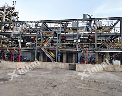 Process:Desliming – one-stage closed-circuit grinding – direct flotation process of one-stage roughing, one-stage scavenging and two-stage concentration – concentrates and tailings dewatering